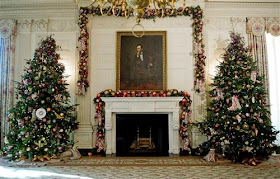 After seeing New York's trees, we went to Washington to tour the White House. Interestingly, the rooms of the "people's house" feature both styles. Here is the official White House tree gilded completely.